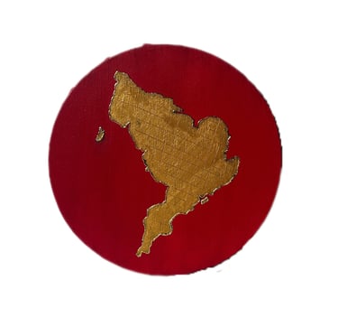 De todos os países que pintei até agora, a China é o único com o qual não tenho nenhuma ligação especial. Tudo se resumiu a um desejo aleatório de incluí-la entre os primeiros, devido à sua influência, e fiquei encantada com o resultado. Além do formato ser lindo, o vermelho e o dourado ficaram perfeitos nesta pintura.